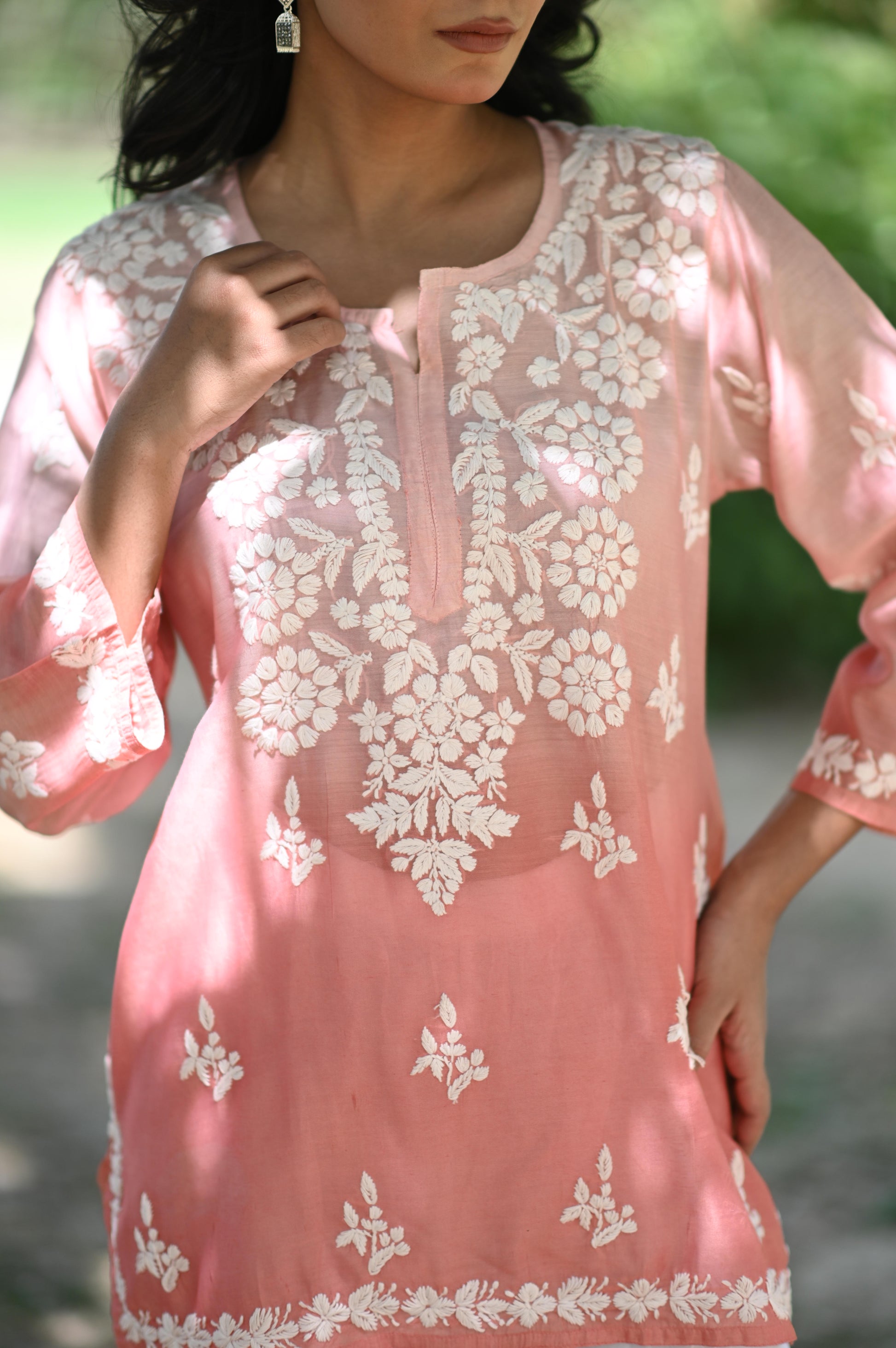 Pure Chanderi Silk Excluive Chikankari Short Top