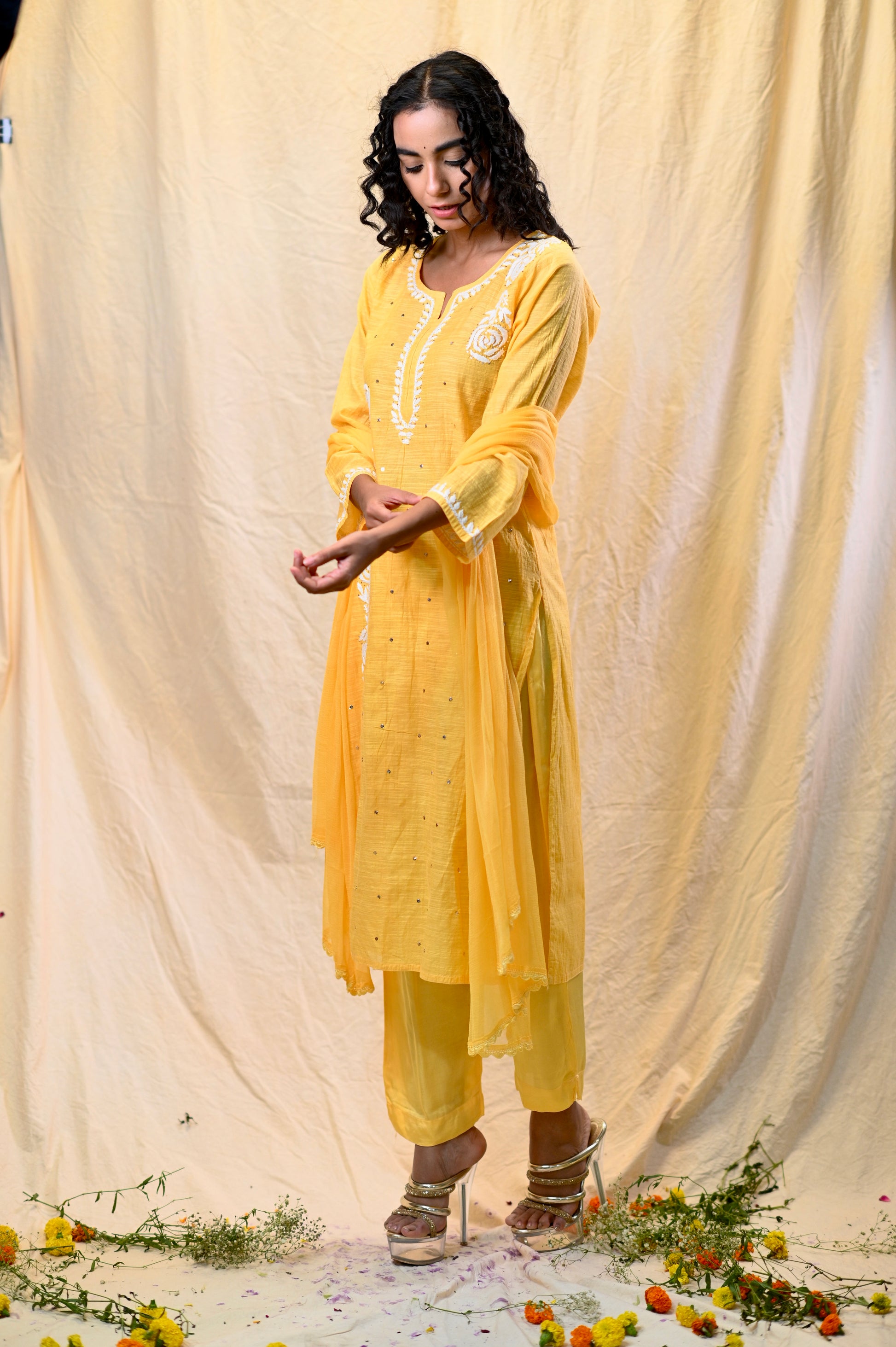Slub Mul Chanderi Exclusive Chikankari 3pc Sets